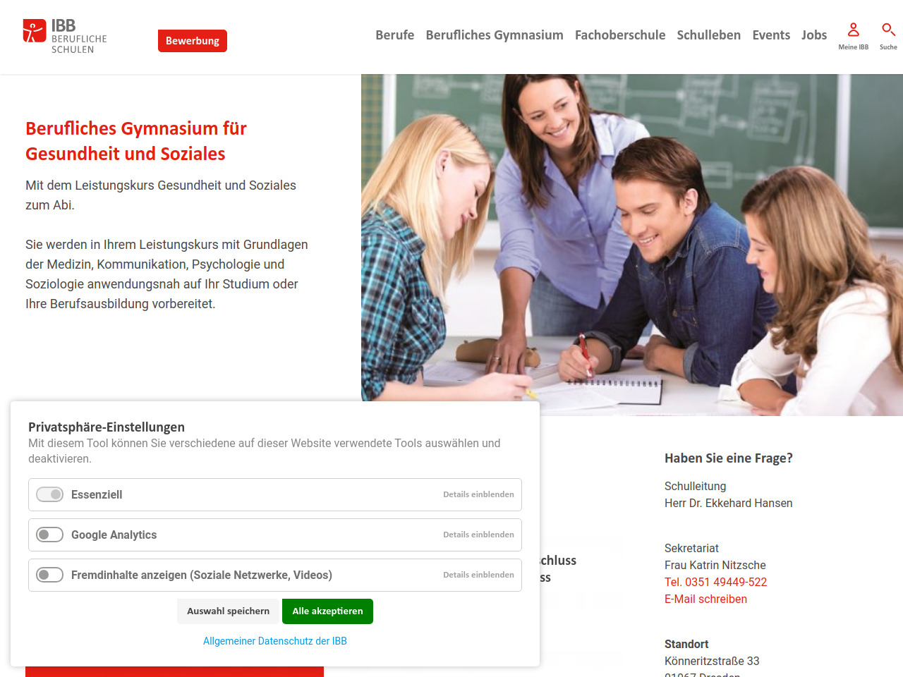 Berufliches Gymnasium der Privaten Schule IBB gGmbH Dresden (Schule in freier Trägerschaft)
