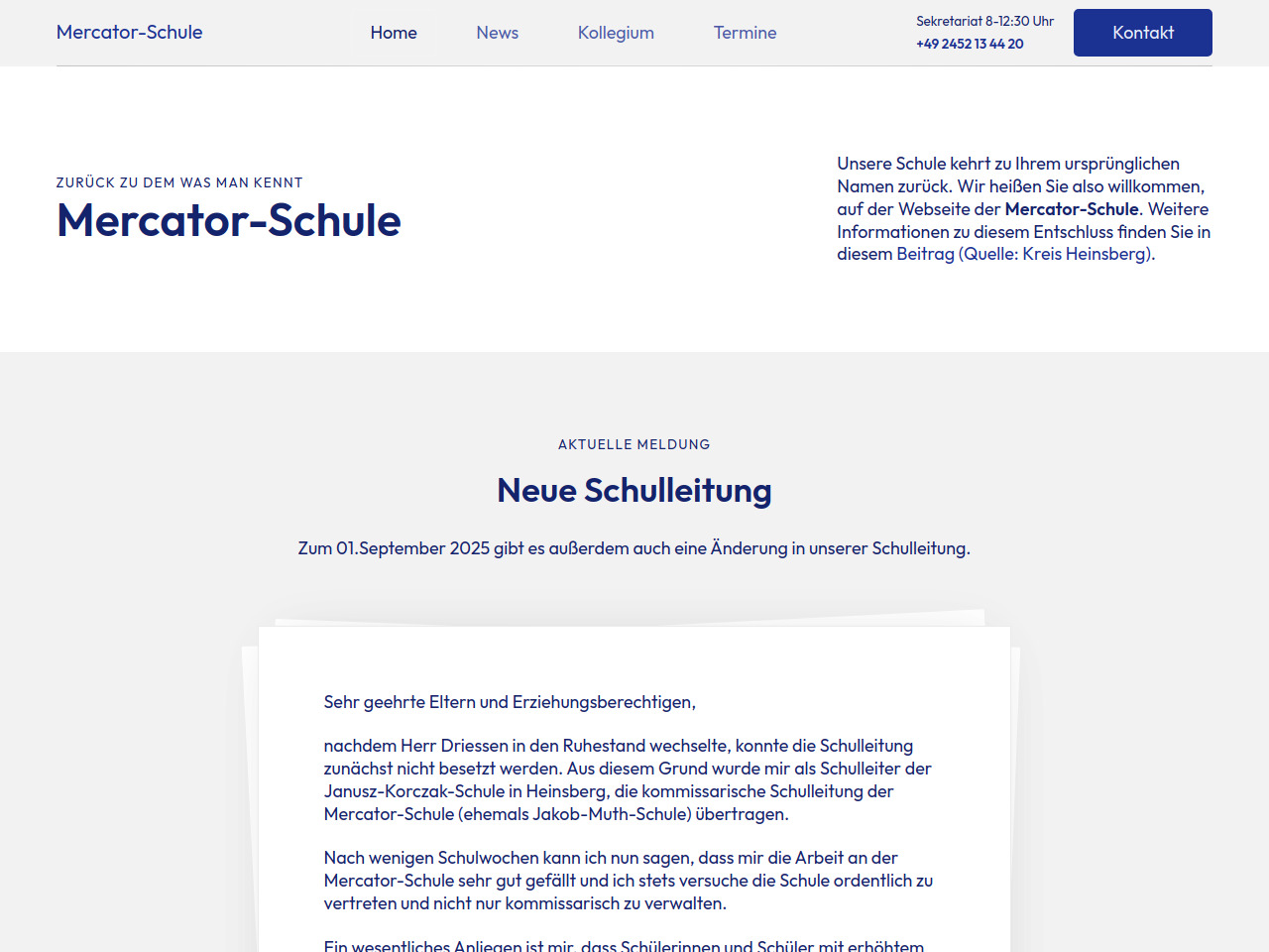 Mercator-Schule d. Kr. Heinsberg Förderschule m.d. FSP LE, ES d. Primar-u.Sek I u. SQ i. Primar.