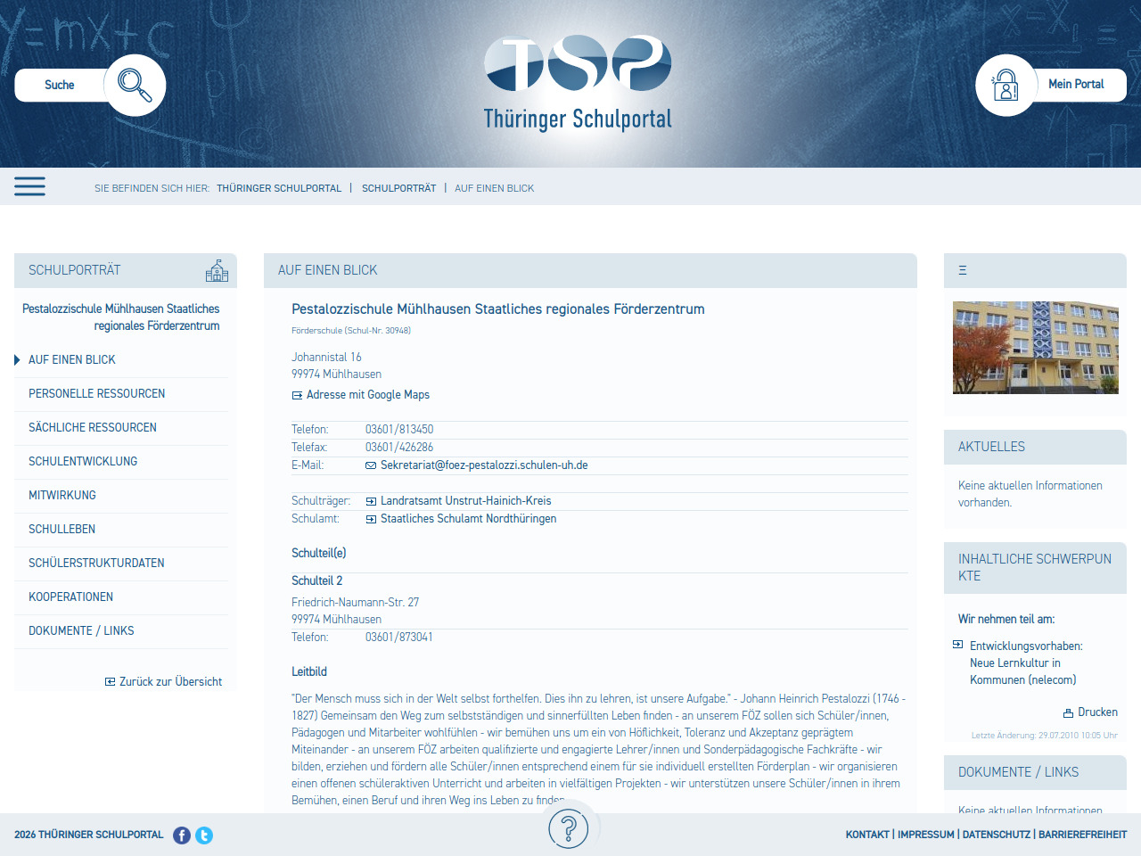 Pestalozzischule Mühlhausen Staatliches regionales Förderzentrum
