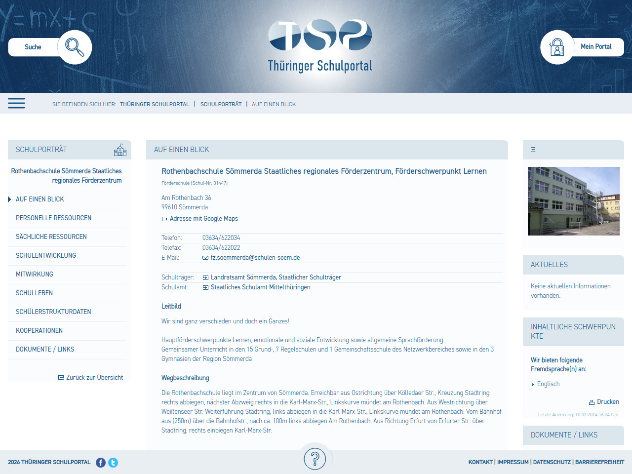 Staatliches Förderzentrum Sömmerda, Rothenbachschule Sömmerda