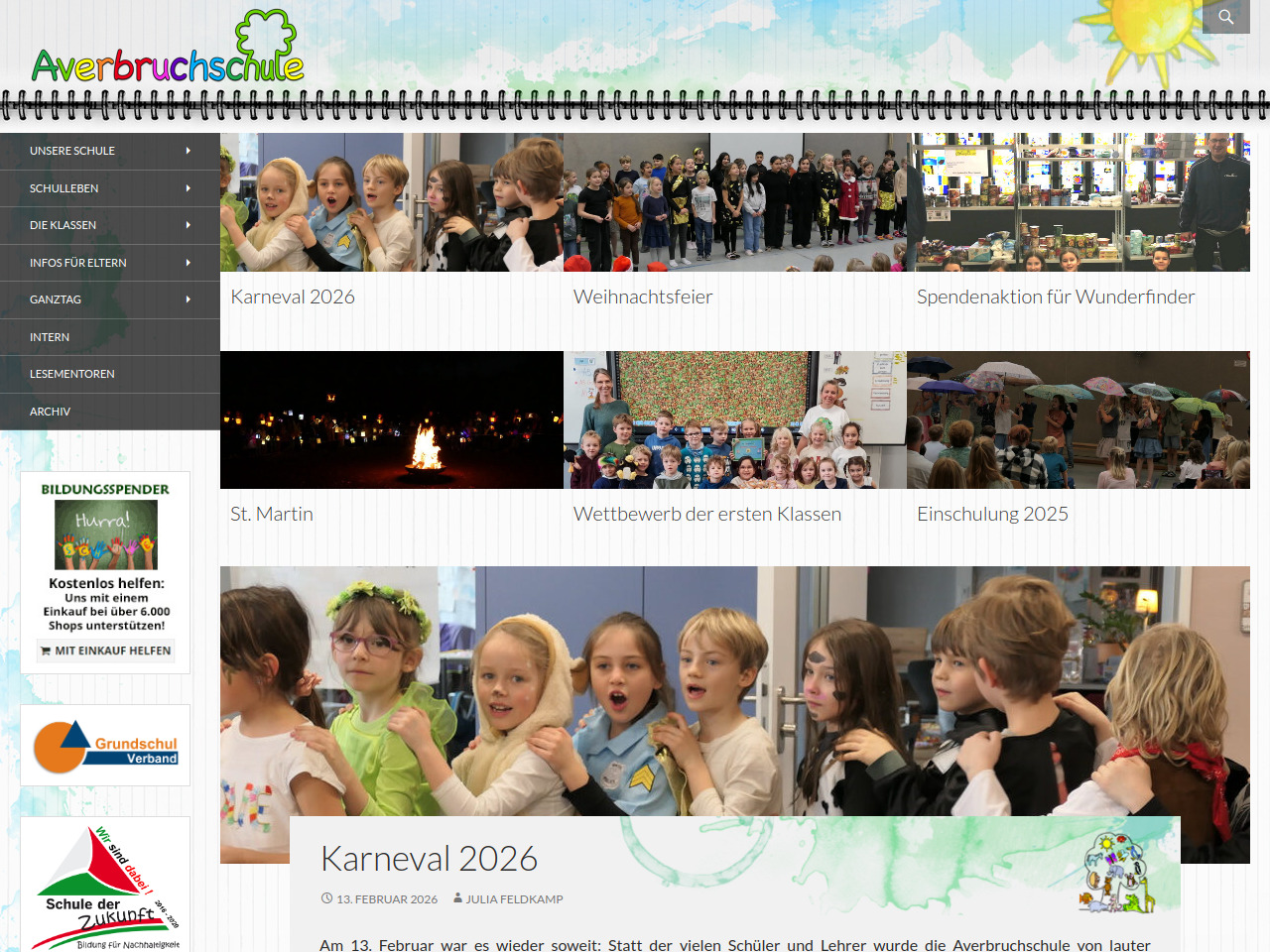 Das Schulleben an der Averbruchschule ist geprägt von vielfältigen außerunterrichtlichen Aktivitäten und schulischen Traditionen. Die Schule feiert gemeinsam mit ihren Schülern Höhepunkte wie Karneval, Weihnachtsfeiern und St. Martin, bei denen die Klassen aktiv teilnehmen und ihre einstudierten Aufführungen präsentieren. Besondere Veranstaltungen bereichern das Schuljahr zusätzlich, etwa Theateraufführungen und Autorenlesungen, die Kindern Zugang zu Kultur und Literatur ermöglichen. Auch sportliche Wettkämpfe wie das Fußballturnier sind fester Bestandteil des Schulkalenders und fördern den Gemeinschaftssinn unter den Schülern.