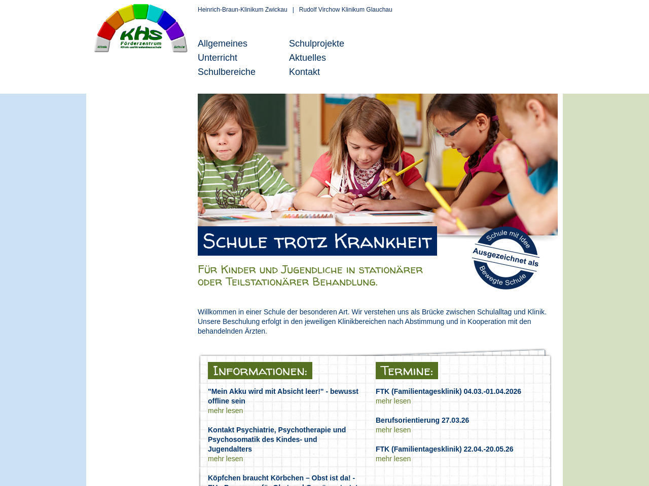 Das Förderzentrum Klinik- und Krankenhausschule am Heinrich-Braun-Klinikum in Zwickau ist eine Einrichtung, die Schülerinnen und Schüler während ihrer stationären oder teilstationären medizinischen Behandlung unterrichtet. Diese Schule verfolgt einen speziellen Ansatz, indem sie sich als Brücke zwischen dem regulären Schulalltag und der klinischen Versorgung versteht. Das Konzept ermöglicht es kranken Kindern und Jugendlichen, trotz ihrer gesundheitlichen Herausforderungen weiterhin am Unterricht teilzunehmen und so den Anschluss an ihr Klassenniveau nicht zu verlieren. Der Unterricht findet direkt in den jeweiligen Klinikbereichen statt und wird in enger Abstimmung und Kooperation mit den behandelnden Ärzten durchgeführt, um die individuelle Situation jedes Schülers angemessen zu berücksichtigen.