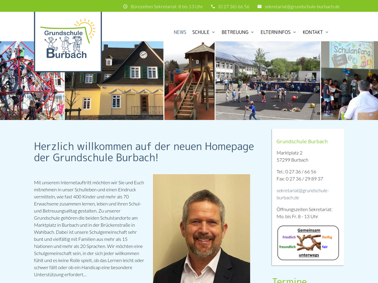 Die Grundschule Burbach bietet eine neue Homepage an, auf der regelmäßig Informationen zum Schulleben, aktuelle News und Nachrichten aus der Schule veröffentlicht werden. Die Website gibt einen umfassenden Eindruck davon, wie fast 400 Kinder zusammen mit mehr als 70 Erwachsenen ihren Schul- und Betreuungsalltag gestalten.