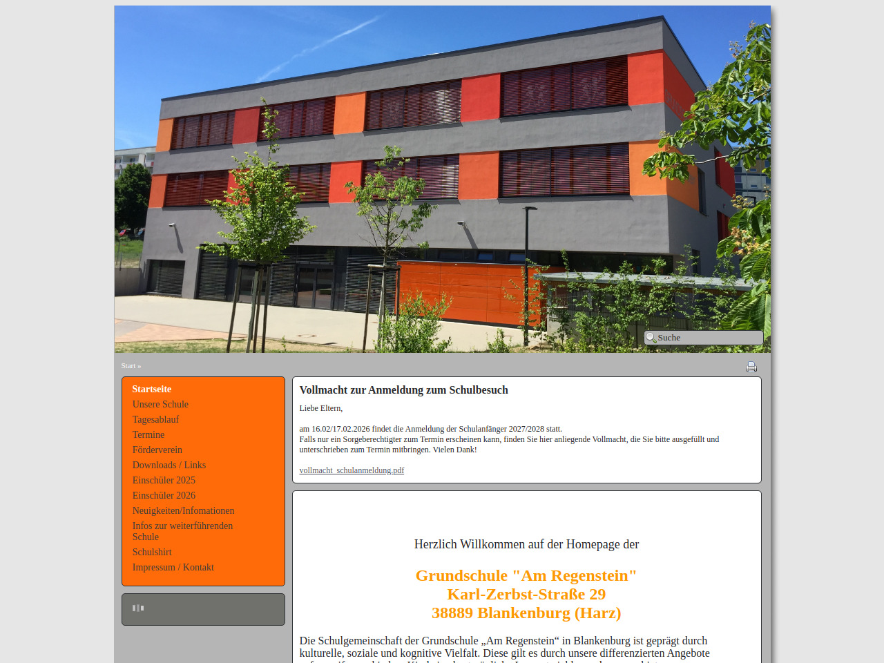 Die Anmeldung der Schulanfänger für das Schuljahr 2027/2028 findet am 16. und 17. Februar 2026 statt.
