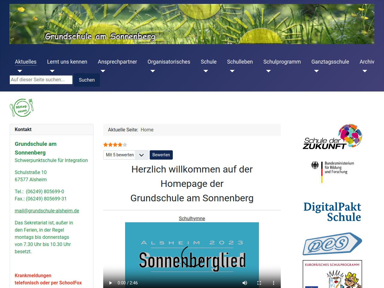 Das Sekretariat der Grundschule am Sonnenberg ist montags bis donnerstags von 7.30 Uhr bis 10.30 Uhr erreichbar und kann bei organisatorischen Fragen kontaktiert werden. Die Telefonnummer lautet (06249) 805699-0, per Fax ist die Schule unter (06249) 805699-31 zu erreichen. Eltern können ihre Kinder im Falle von Krankheit telefonisch oder über die digitale Plattform SchoolFox bis 8.00 Uhr am Morgen abmelden. Die Schule nutzt SchoolFox als Kommunikationsmittel zwischen Schule und Familie, was digitale Abläufe für Eltern vereinfacht. Krankmeldungen sollten zeitnah erfolgen, um den Unterricht entsprechend planen zu können.