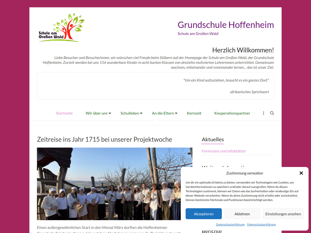 Die Schule organisiert regelmäßig Veranstaltungen wie Winter- und Frühjahrsmark