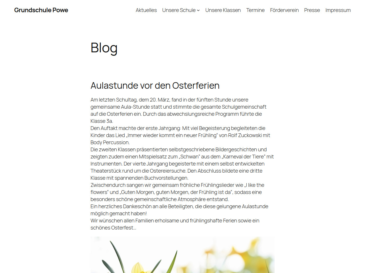 Die Grundschule Powe legt großen Wert auf kulturelle und künstlerische Aktivitäten, wie regelmäßige Aulastunden zeigen, in denen Schülerinnen und Schüler aller Jahrgänge ihre Talente präsentieren. Die Kinder beschäftigen sich intensiv mit Musik, Instrumentalunterricht, Theateraufführungen und kreativen Schreibprojekten wie Bildergeschichten.