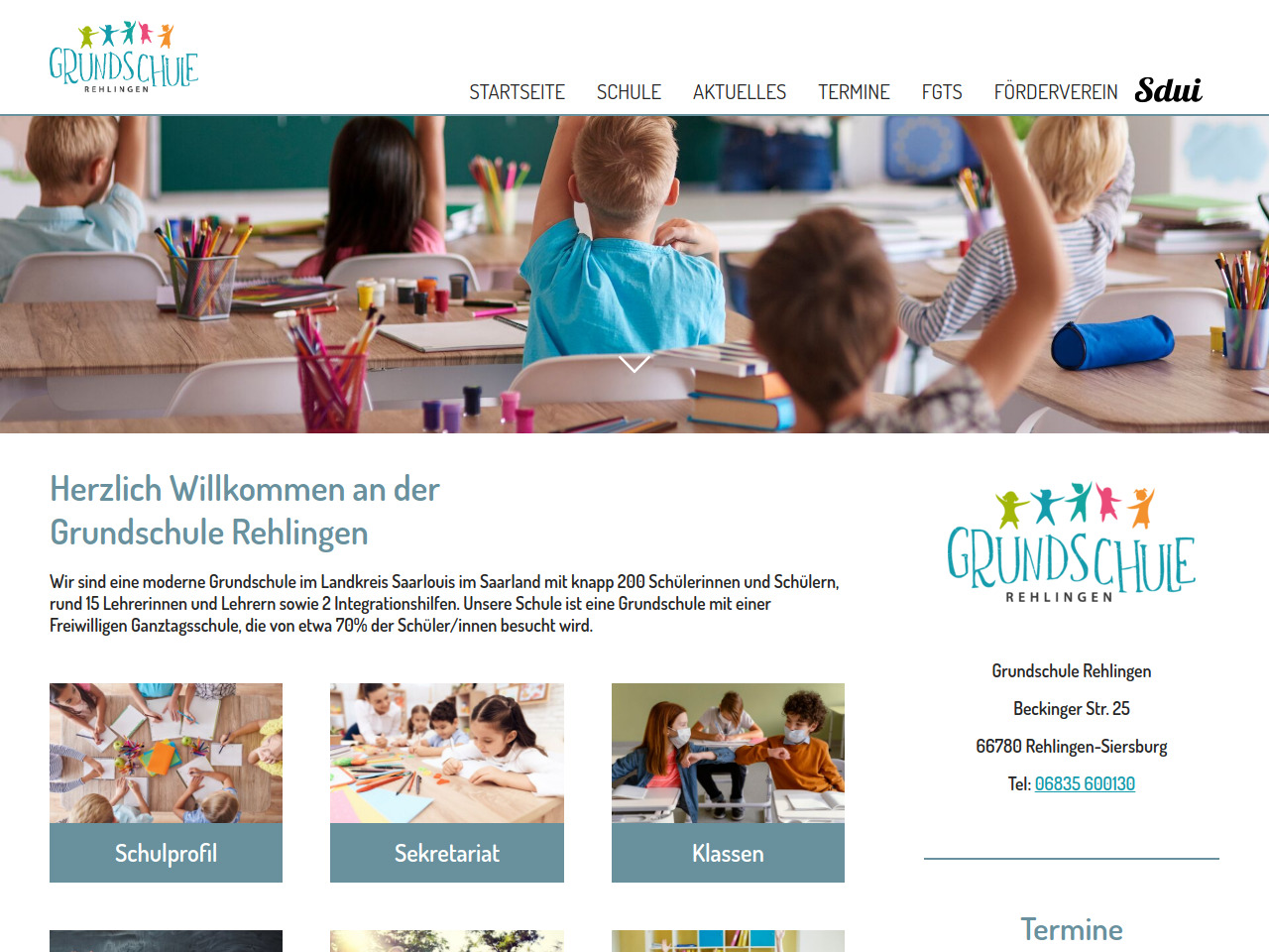 Die Grundschule Rehlingen ist eine Grundschule im Landkreis Saarlouis und befindet sich in Rehlingen-Siersburg. Die Schule wird derzeit von knapp 200 Schülerinnen und Schülern besucht, die von etwa 15 Lehrerinnen und Lehrern sowie 2 Integrationshilfen unterrichtet und betreut werden. Mit dieser Schülerzahl bietet die Grundschule Rehlingen eine überschaubare Größe, die es ermöglicht, die einzelnen Kinder angemessen zu fördern und zu fordern. Das Kollegium setzt sich aus erfahrenen Fachkräften zusammen, die den Unterricht und die pädagogische Arbeit gestalten. Die beiden Integrationshilfen zeigen, dass die Schule Wert darauf legt, Schülerinnen und Schüler mit besonderem Unterstützungsbedarf in den Schulalltag einzubeziehen.