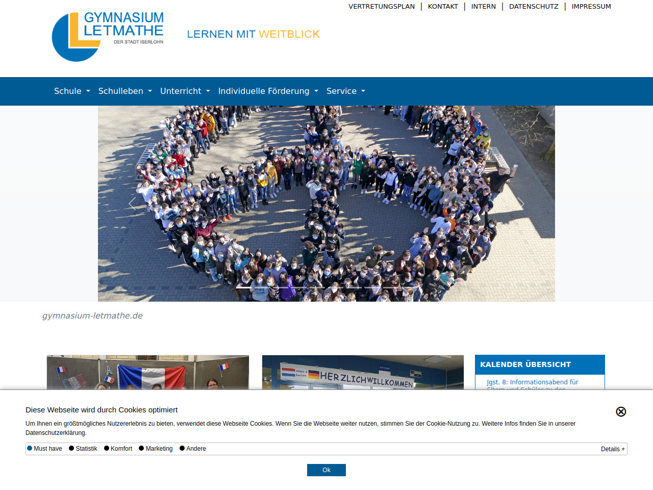 Das Gymnasium Letmathe ist ein gebundenes Ganztagsgymnasium, das mit dem Motto "Lernen mit Weitblick" arbeitet. Die Schule bietet ihren Schülern ein umfassendes Angebot an Aktivitäten, die über den regulären Unterricht hinausgehen.