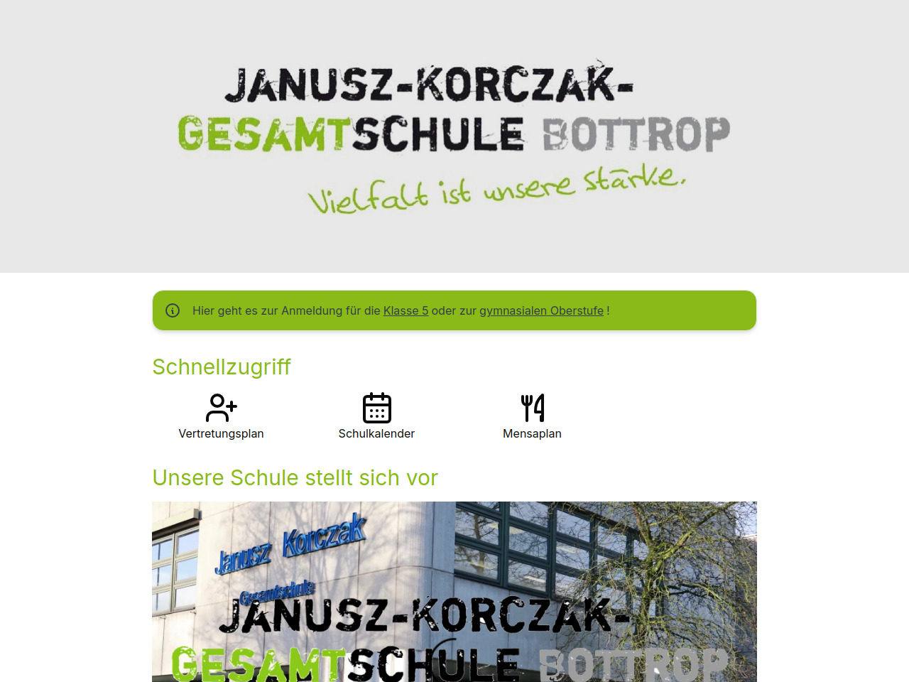 Die Janusz-Korczak-Gesamtschule bietet auf ihrer Website einen direkten Schnellzugriff zur Anmeldung für die Klasse 5 und die gymnasiale Oberstufe an. Interessierte Eltern und Schüler können sich vor der Anmeldung zu Schnuppernachmittagen und Schnuppervormittagen anmelden, um die Schule kennenzulernen.
