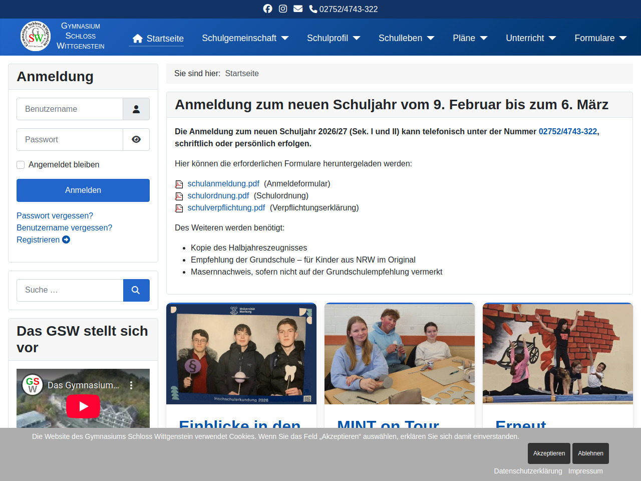 Die Anmeldung zum neuen Schuljahr 2026/27 für die Sekundarstufe I und II findet vom 9. Februar bis zum 6.