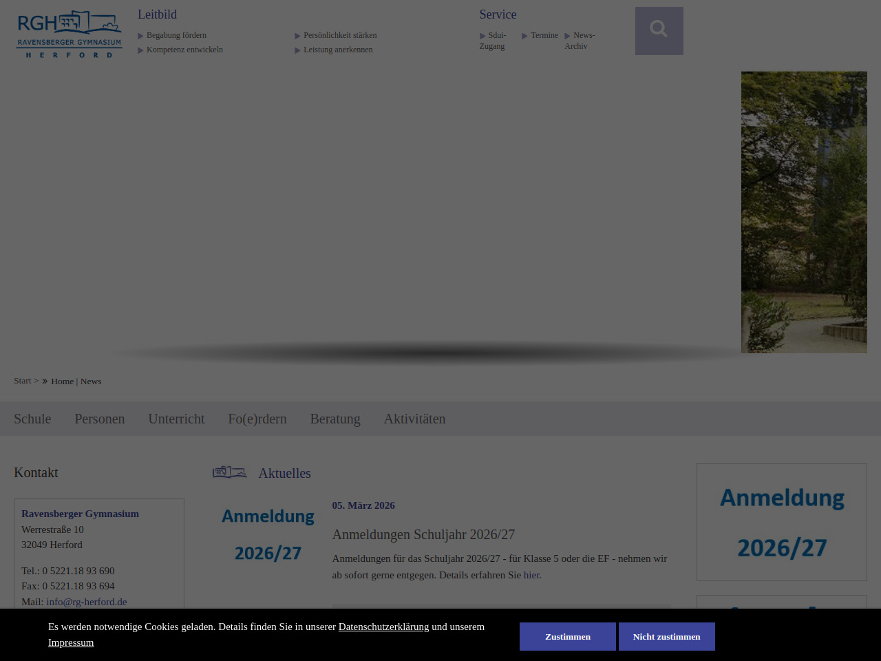 Das Ravensberger Gymnasium in Herford nimmt Anmeldungen für das Schuljahr 2026/27 ab sofort entgegen. Sie können Ihr Kind sowohl für die Klasse 5 als auch für die Einführungsphase (EF) anmelden.