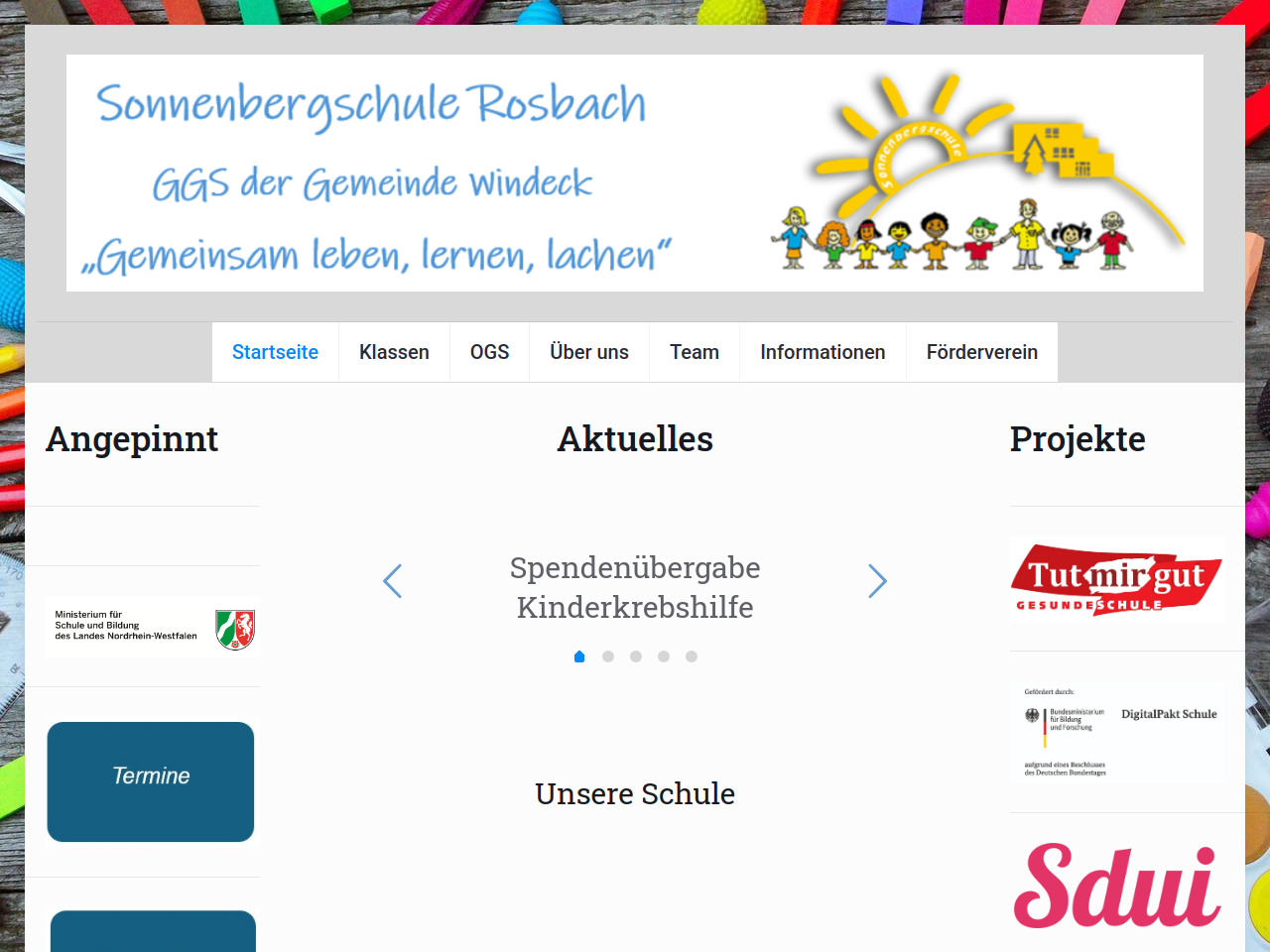 Ein besonderes Merkmal der Sonnenbergschule ist ihr ganzheitlicher Ansatz zum Schulalltag, der sich in ihrem Leitgedanken "Gemeinsam Leben, Lernen und Lachen" widerspiegelt. Dies deutet auf ein Schulklima hin, das neben dem Unterrichtsangebot auch Wert auf soziales Miteinander und persönliche Entwicklung legt. Die Schule engagiert sich aktiv in ihrer Gemeinde, wie verschiedene Aktionen und Projekte zeigen. So hat die Schule beispielsweise an der Aktion "Sauberes Windeck" teilgenommen, was für ein Umweltbewusstsein und Verantwortungsgefühl spricht. Darüber hinaus unterstützt die Schule wohltätige Zwecke, etwa durch Spendenaktionen für die Kinderkrebshilfe, die zeigen, dass soziales Engagement Teil der Schulkultur ist.