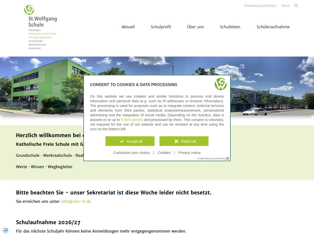 Die St.-Wolfgang-Schule in Reutlingen ist eine katholische Freie Schule, die drei verschiedene Schulformen unter einem Dach vereint. Schülerinnen und Schüler können hier die Grundschule, die Werkrealschule oder die Realschule besuchen.